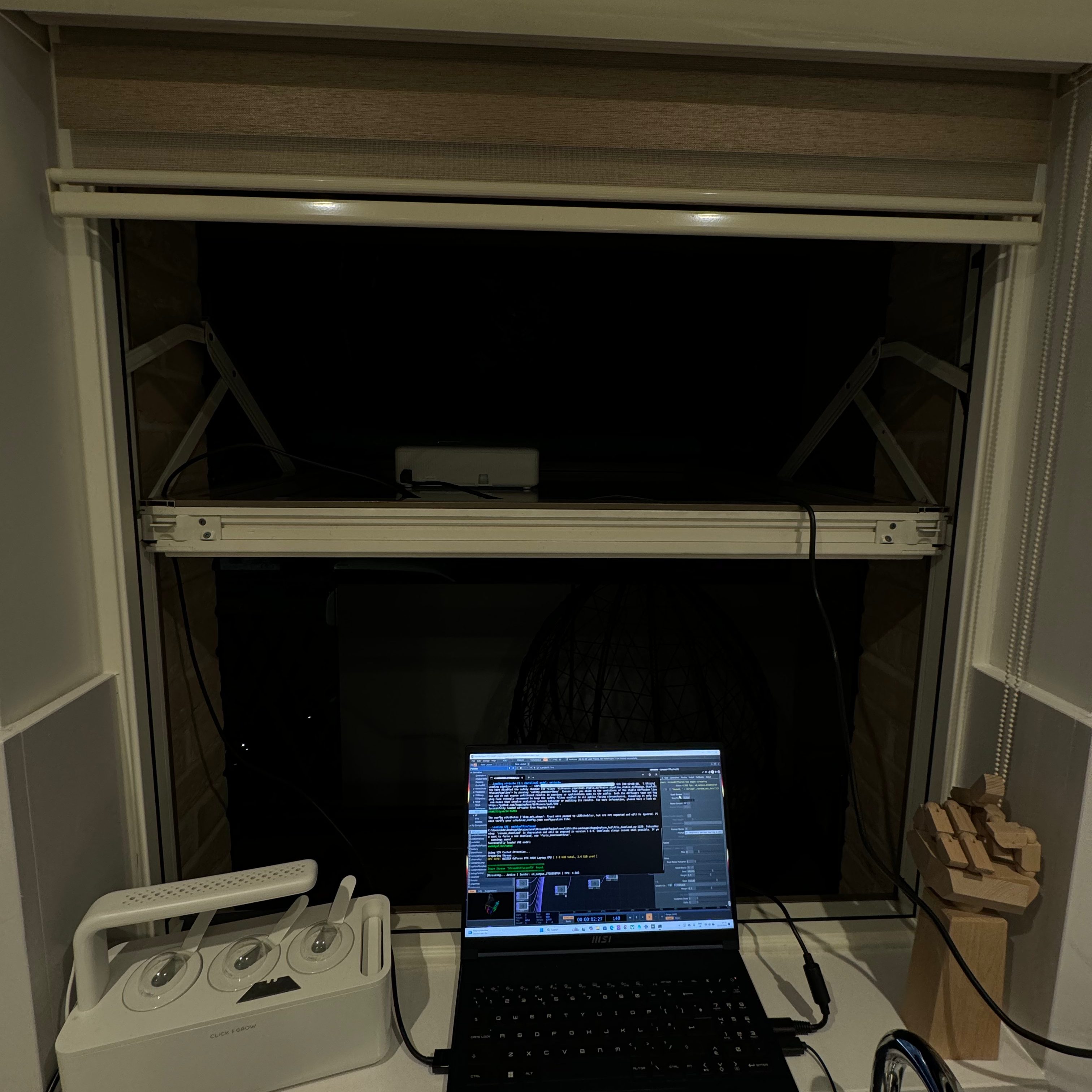 Testing brightness thresholds and projection alignment across non-flat surfaces.
