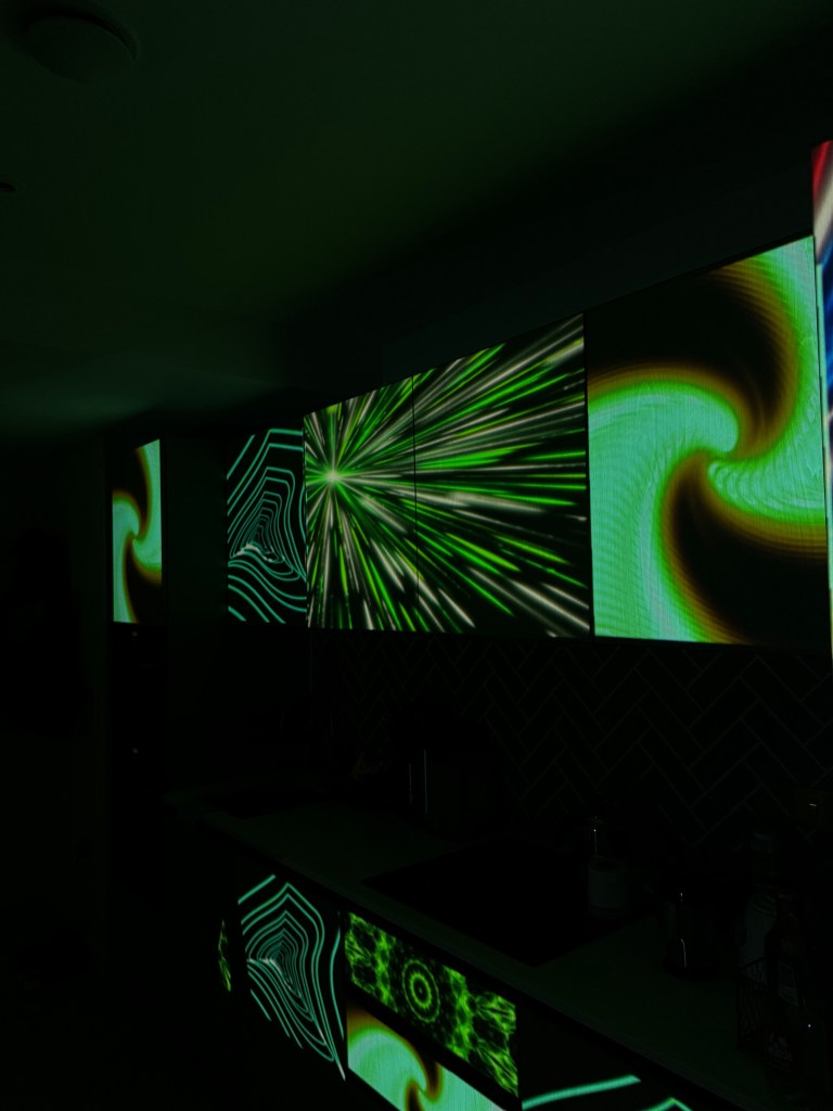 Fragmented Realities is a spatial media experiment that reveals the narrative potential of multi-surface projection. By using everyday architecture as visual scaffolding, this project transforms a functional space into a dynamic site of parallel storytelling—a technique applicable to homes, galleries, or ambient commercial design.