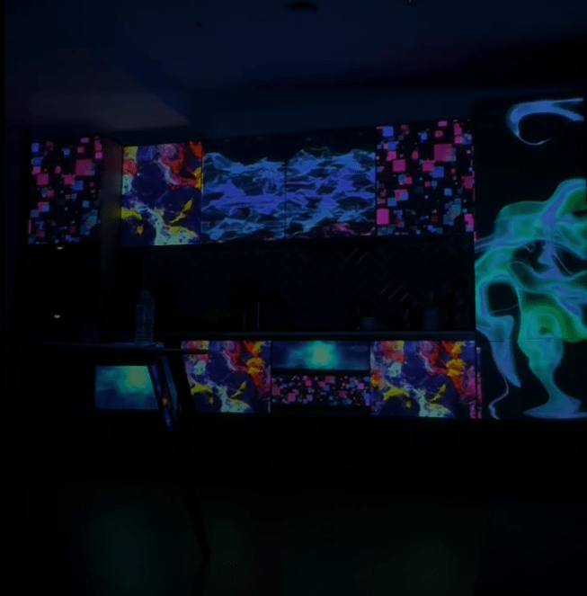 Resolume was used to assign unique visual loops to specific mapped regions of the room.